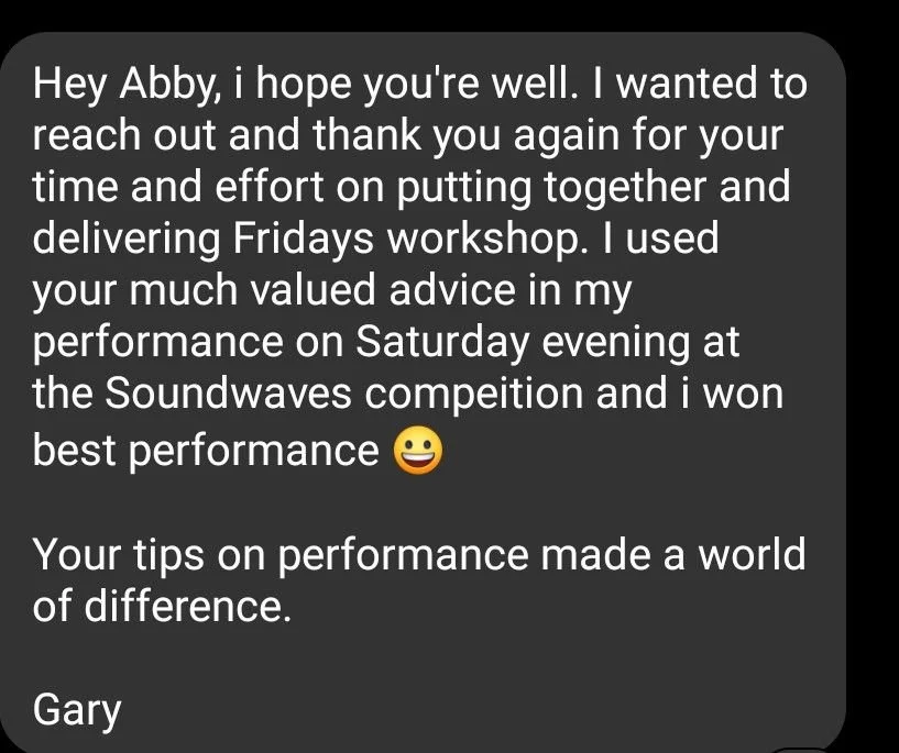 “I want to really thank you again for the workshop and the feedback…the amount of effort you put into it, which blew me away if I'm honest…[the workshops]have given me real direction in how to draw out the hidden rhymes and break the poem up so that it doesn't feel like an often impenetrable wall of noise to read. ”